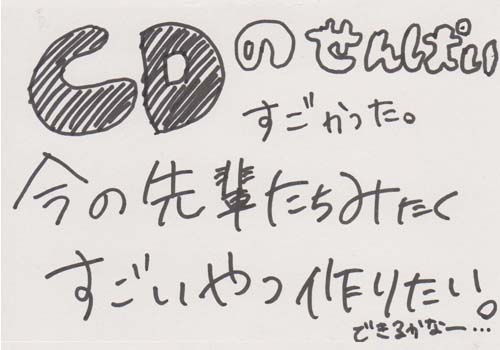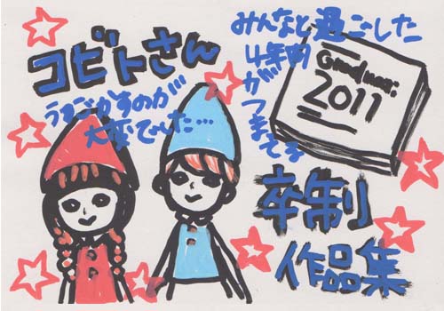 内 容:東北工業大学クリエイティブデザイン学科卒業制作展の堀江研究室展示ブース内で、前述2.1.〜2.5.の活動内容の展示を行った。展示を見た来場者に、「あなたがつくったもの」と「あなたがつくりたいもの」をテーマに、それらに関するモノ・コトをカードに書いてもらい、それについてスタッフに語ってもらった。カードの総計は100枚。来場者は日常生活についてのカードを書き、卒業制作展に出展している学生は、作品や今後の創作活動について語っていた。